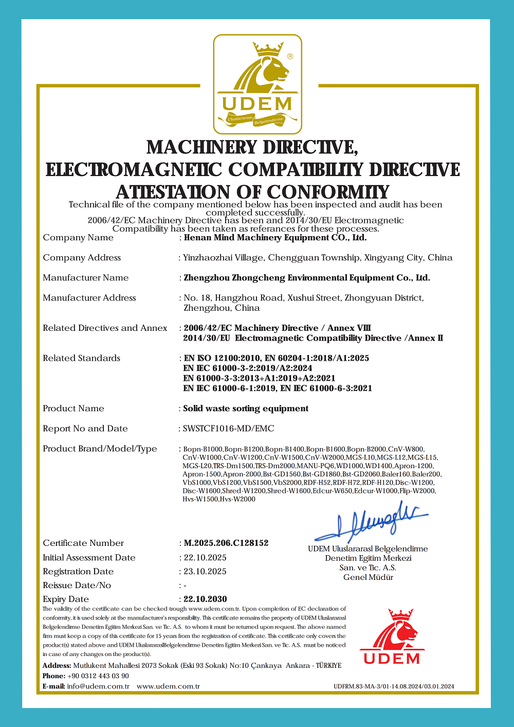 一种陈腐垃圾筛分生产线-实用新型专利证书